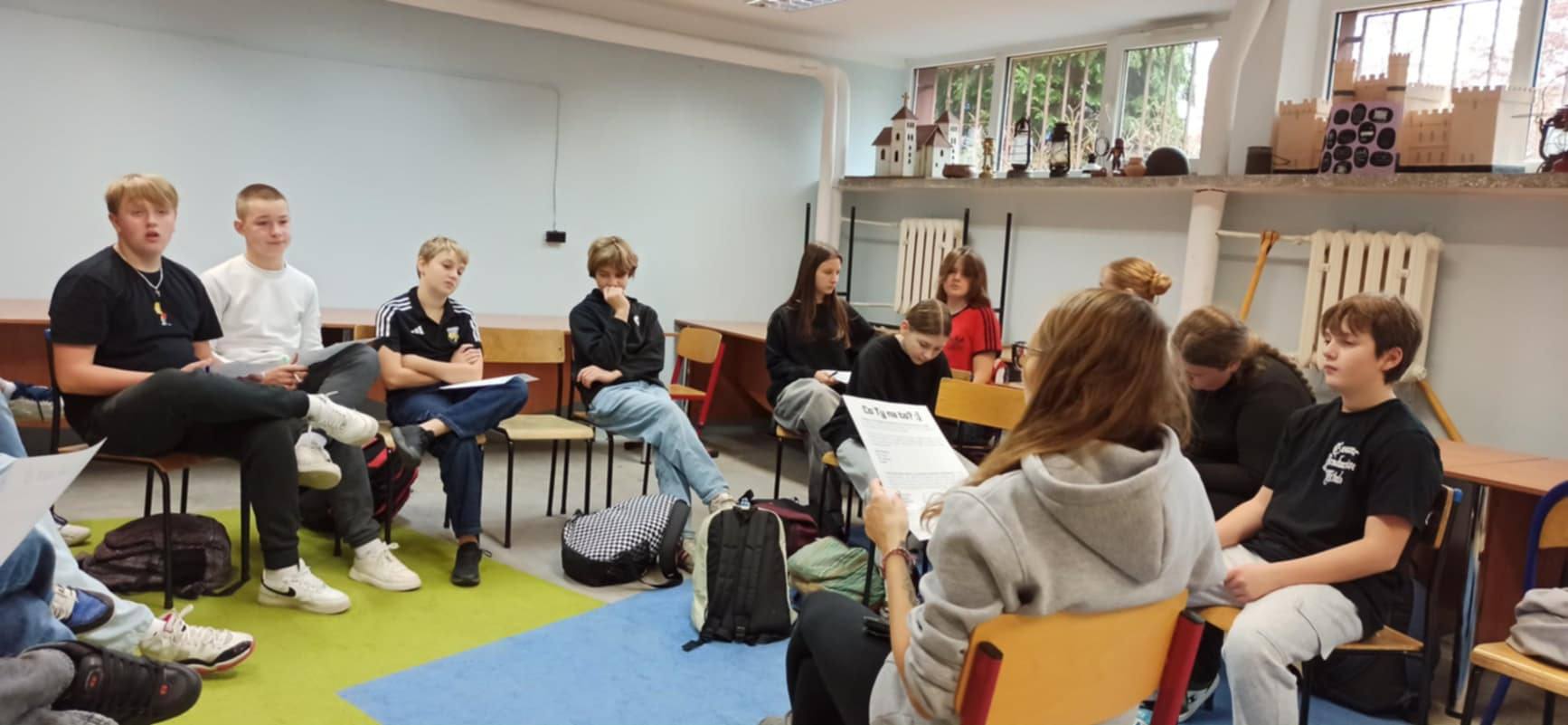 W dniach 12-15 listopada 2024 r w klasach IV-VIII odbyły się warsztaty profilaktyczne przeprowadzone przez p. Marlenę Jaszczak z Centrum Działań Profilaktycznych w Wieliczce. Warsztaty miały na celu zdobycie umiejętności komunikacji asertywnej, która pozwoli uczniowi umiejętnie odmawiać, jak pojawią się zagrożenia tj. m. in. używki, alkohol, papierosy. Asertywność to umiejętność, która pozwala dziecku na sprawne funkcjonowanie w świecie społecznym, a także jest elementem zdrowej komunikacji w bliskich relacjach. Jeżeli nie zostanie ona wykształcona, młody człowiek może się spotkać z wieloma trudnościami takimi jak niesatysfakcjonujące relacje i sytuacja zawodowa. To z kolei może się przyczyniać do większej podatności na stres i chęć sięgnięcia po niezdrowe używki. W trakcie zajęć uczestnicy ćwiczyli zachowania asertywne w różnych sytuacjach, a także rozróżniali komunikaty asertywne, uległe i agresywne. Uczyli się rozróżniania komunikatu “Ja” od komunikatu “Ty” oraz formułowania asertywnych wypowiedzi. W programie stosowane były metody aktywizujące między innymi: praca w grupach, w parach, dyskusja na forum grupy, praca indywidualna, gry i zabawy integracyjne stymulujące kreatywność oraz zajęcia ruchowe rozładowujące ewentualne napięcie.