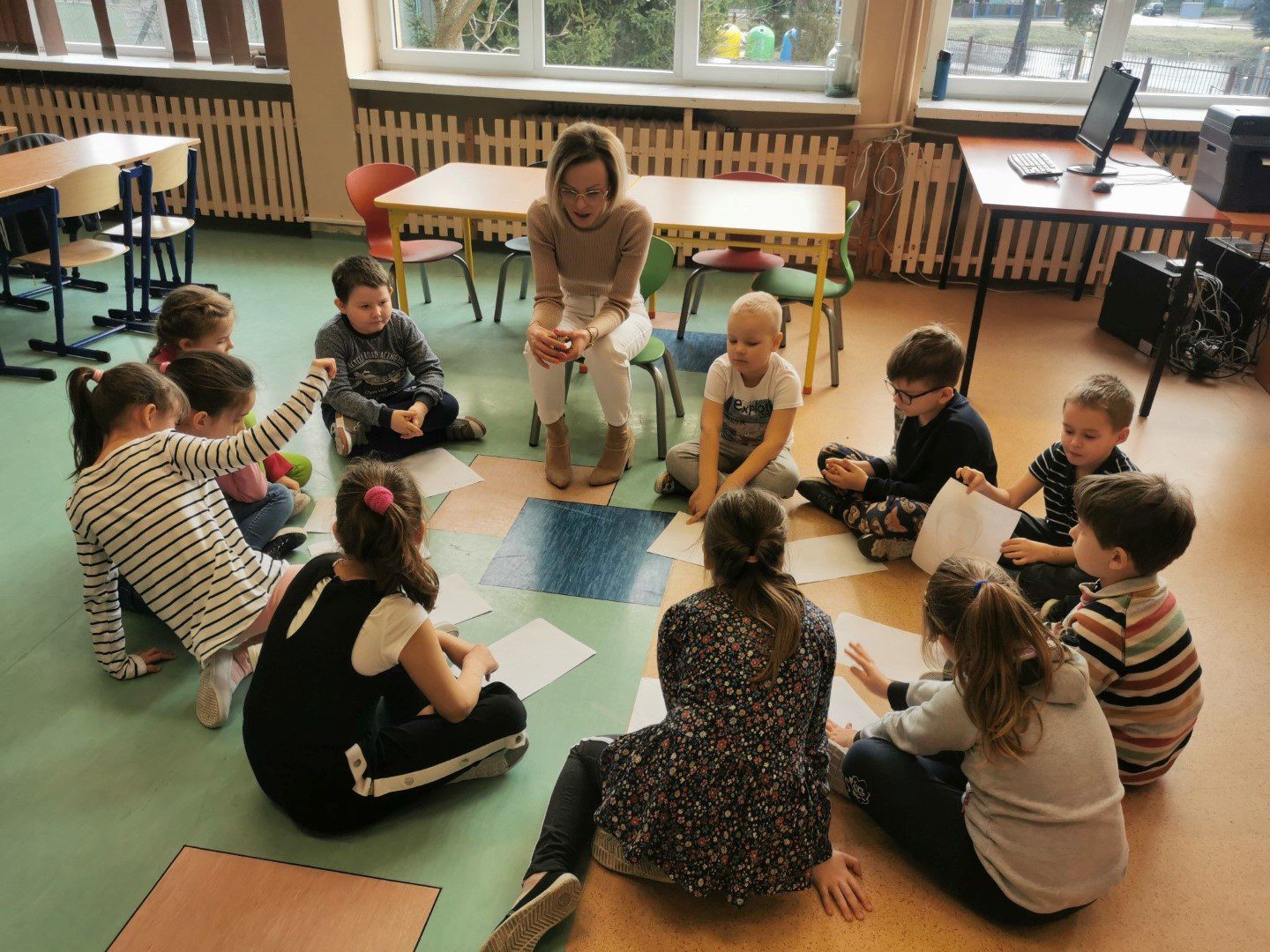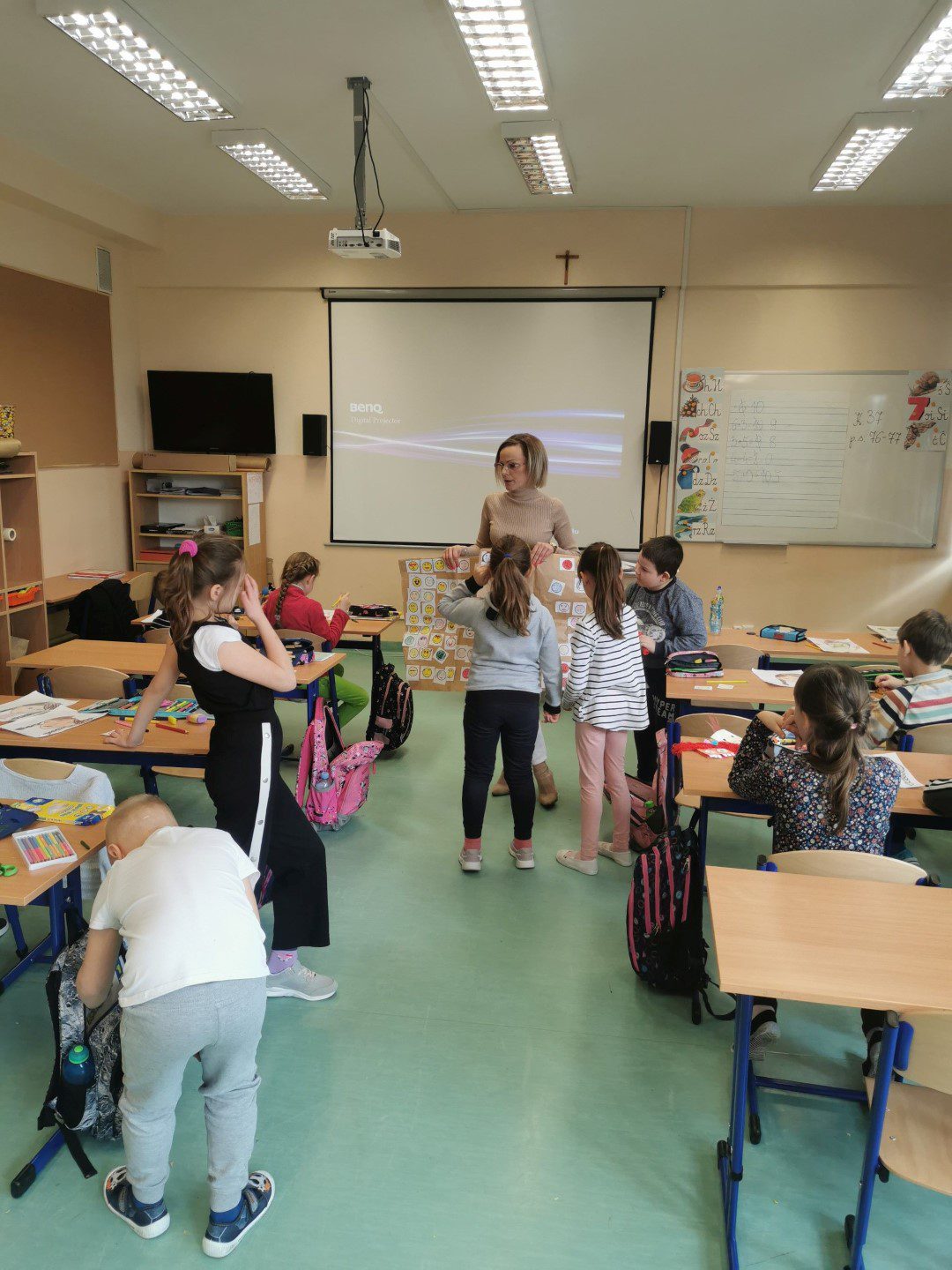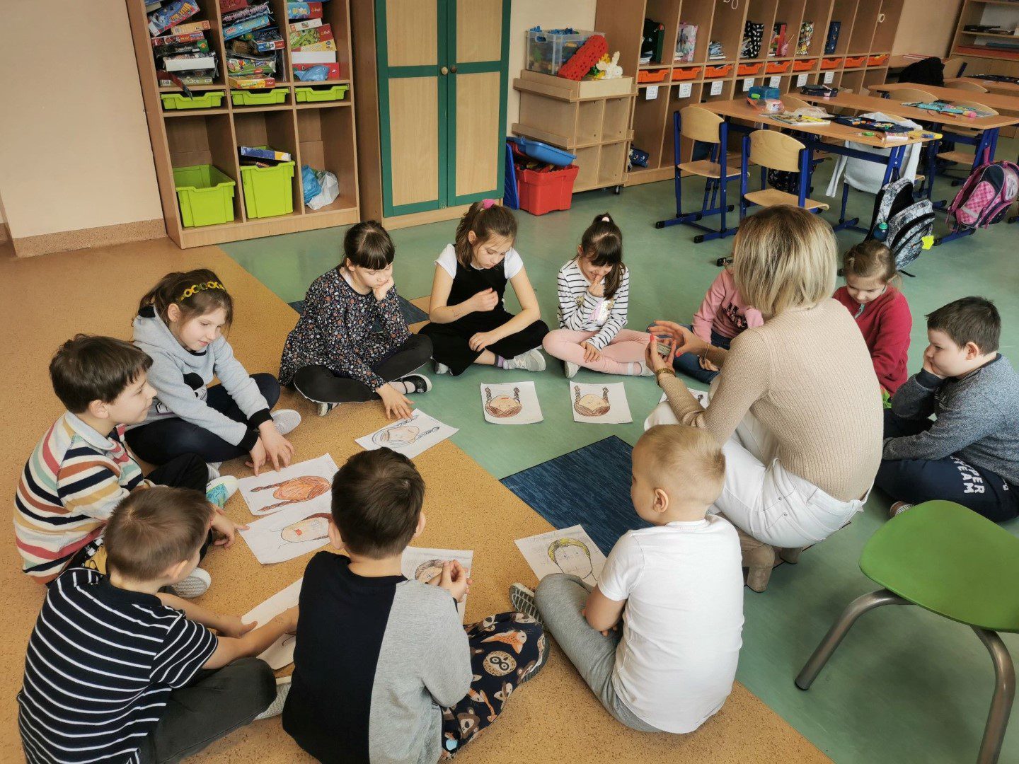 W piątek 25.02.2022 klasę 1d odwiedziła pani pedagog Aleksandra Strąg z Poradni Psychologiczno-Pedagogicznej w Kozienicach. Przeprowadziła z dziećmi dwugodzinne warsztaty pt.:”Zabawy z emocjami”. Uczniowie wykonywali różne ćwiczenia uczące m.in. jak być asertywnym, jak współpracować w grupie, jak wierzyć we własne umiejętności i możliwości. A przede wszystkim dzieci poznały możliwość kontroli i nazywania własnych emocji. Serdecznie dziękujemy za bardzo ciekawe zajęcia.