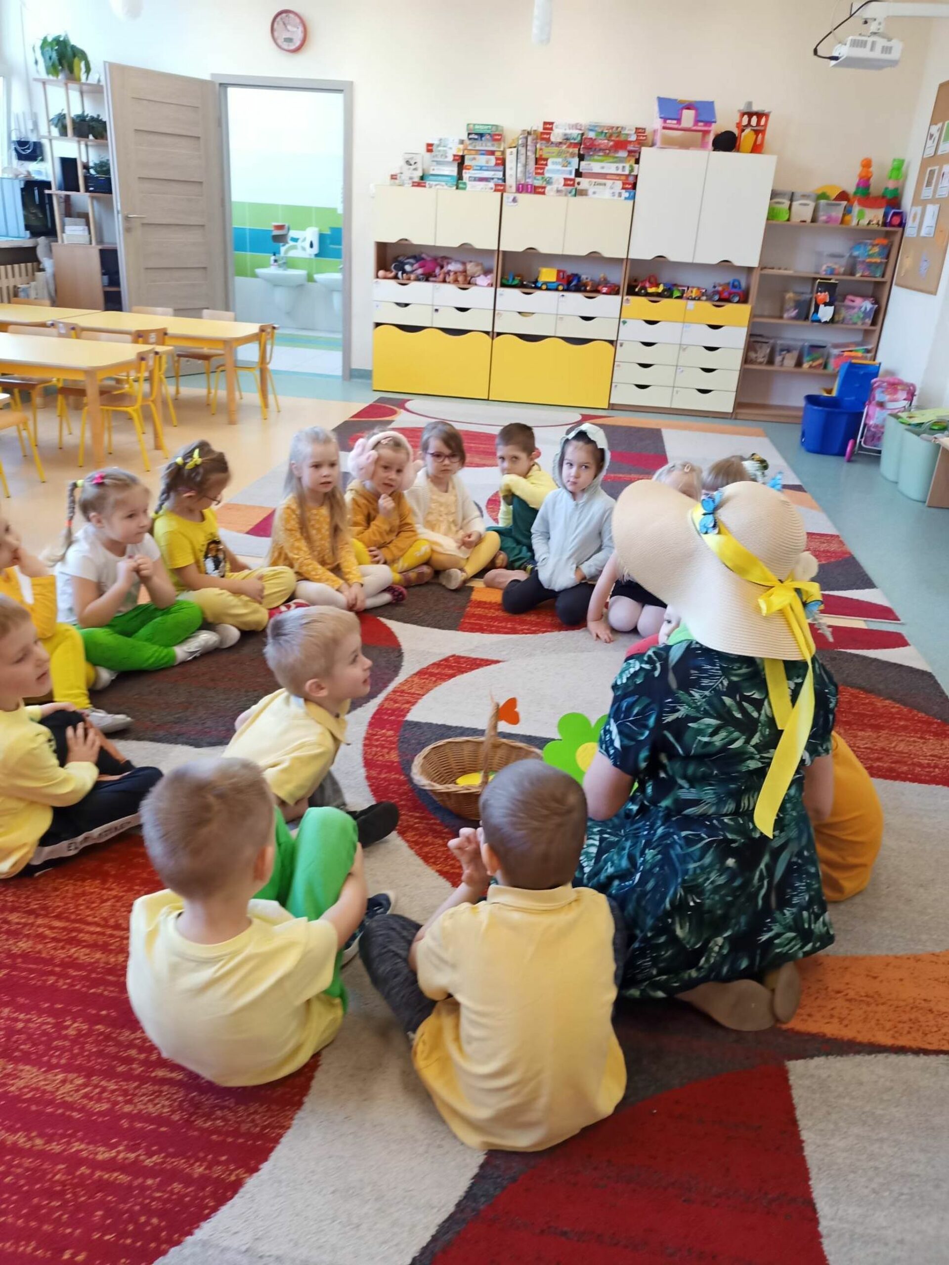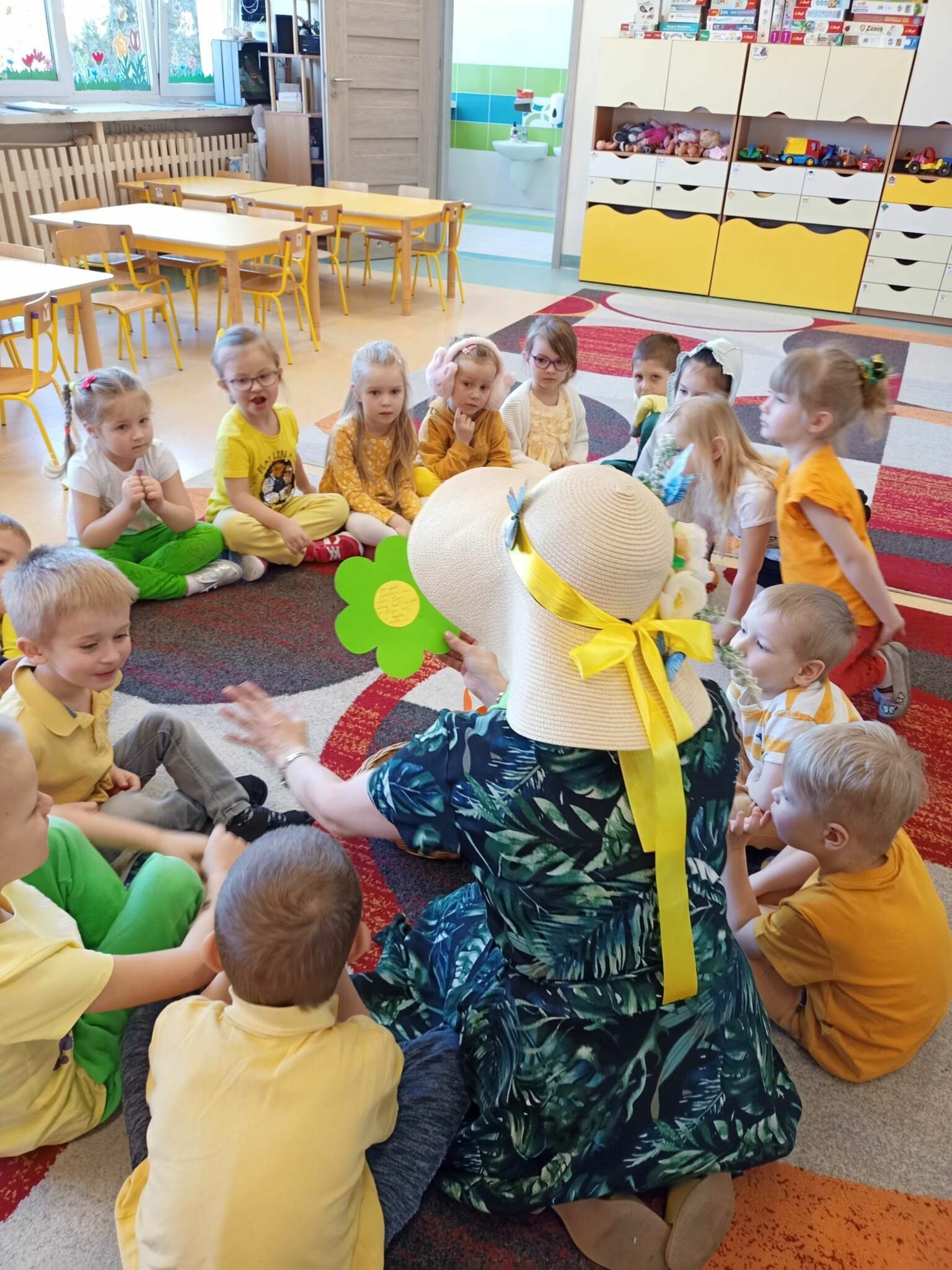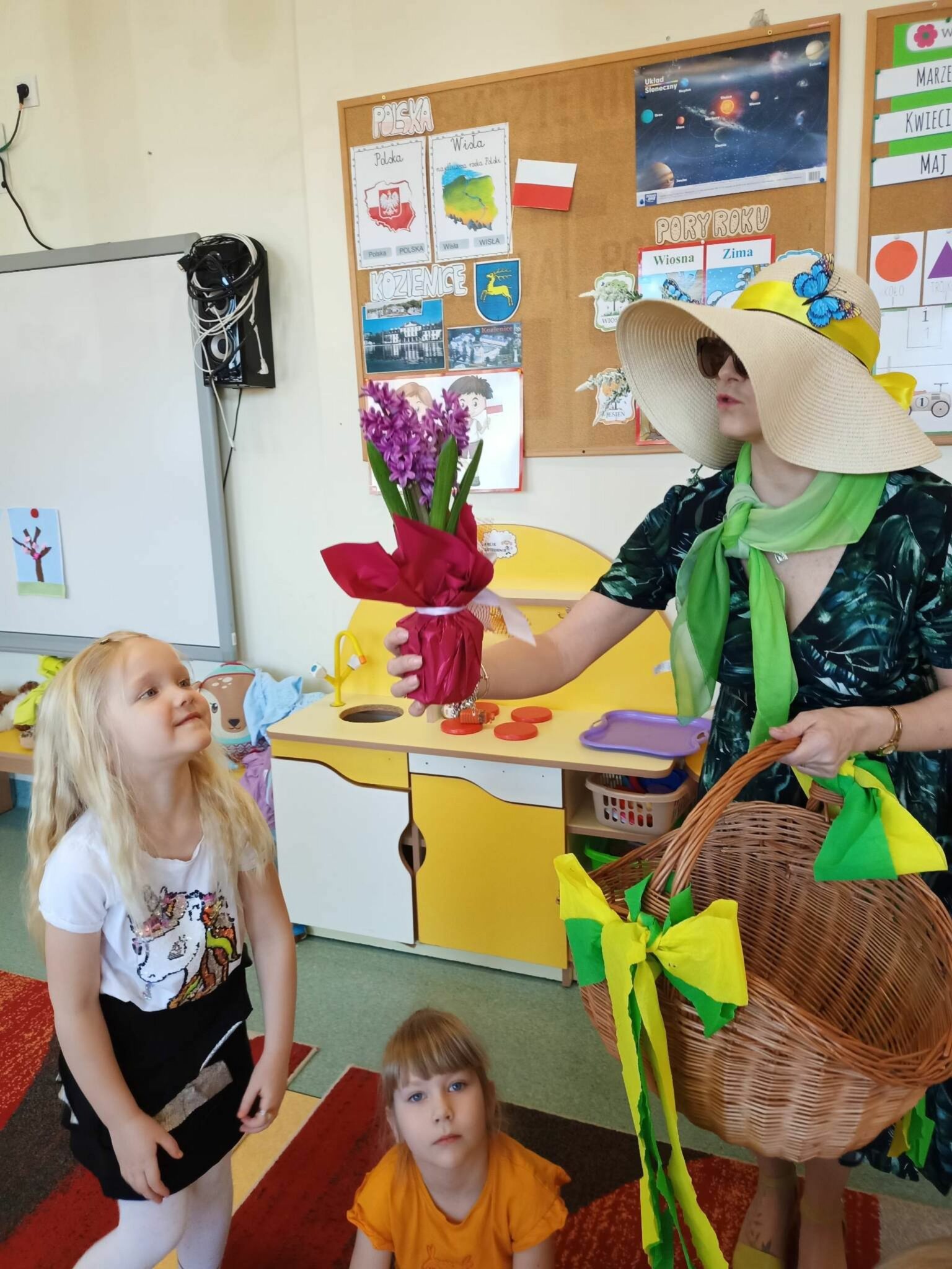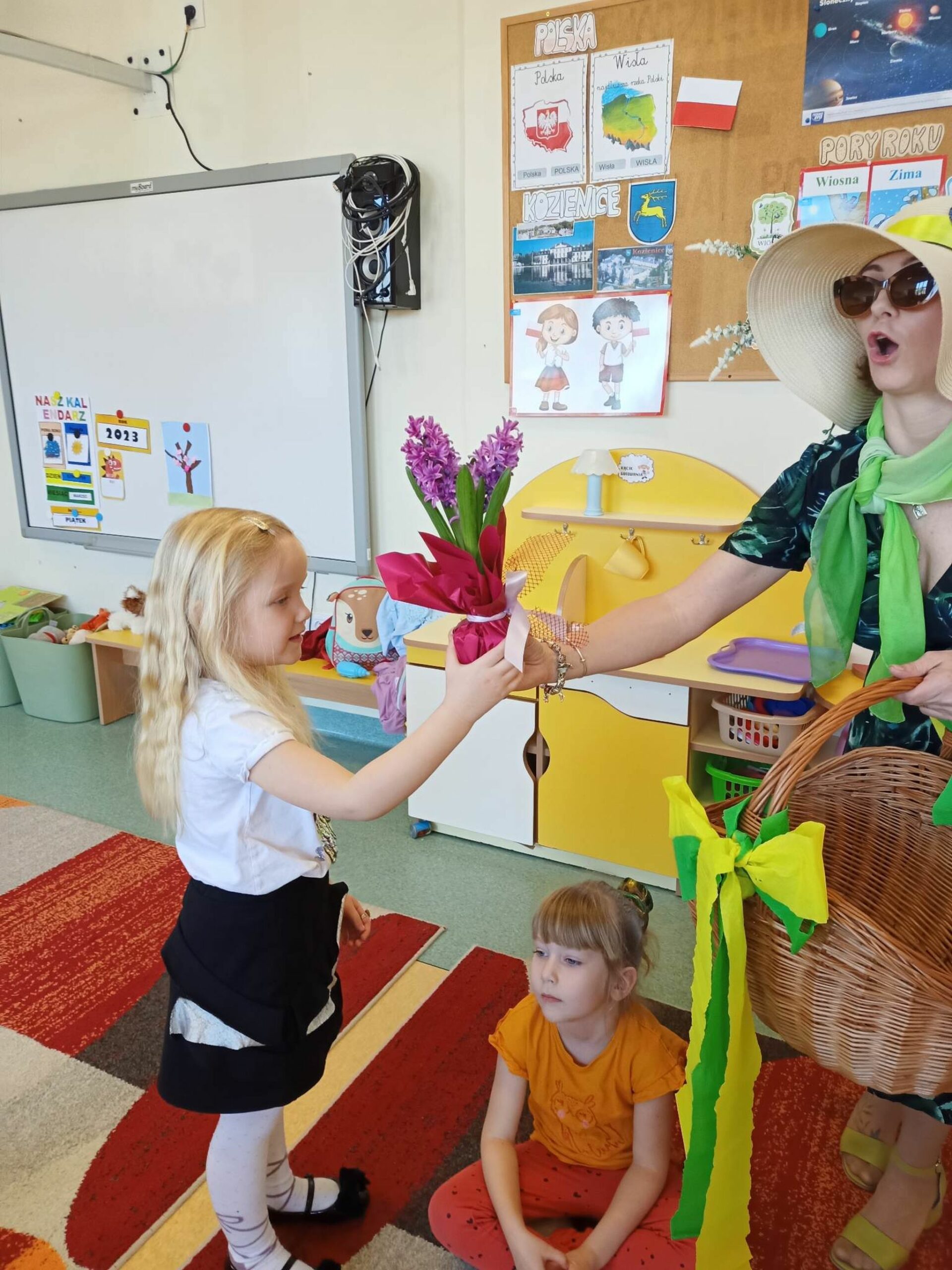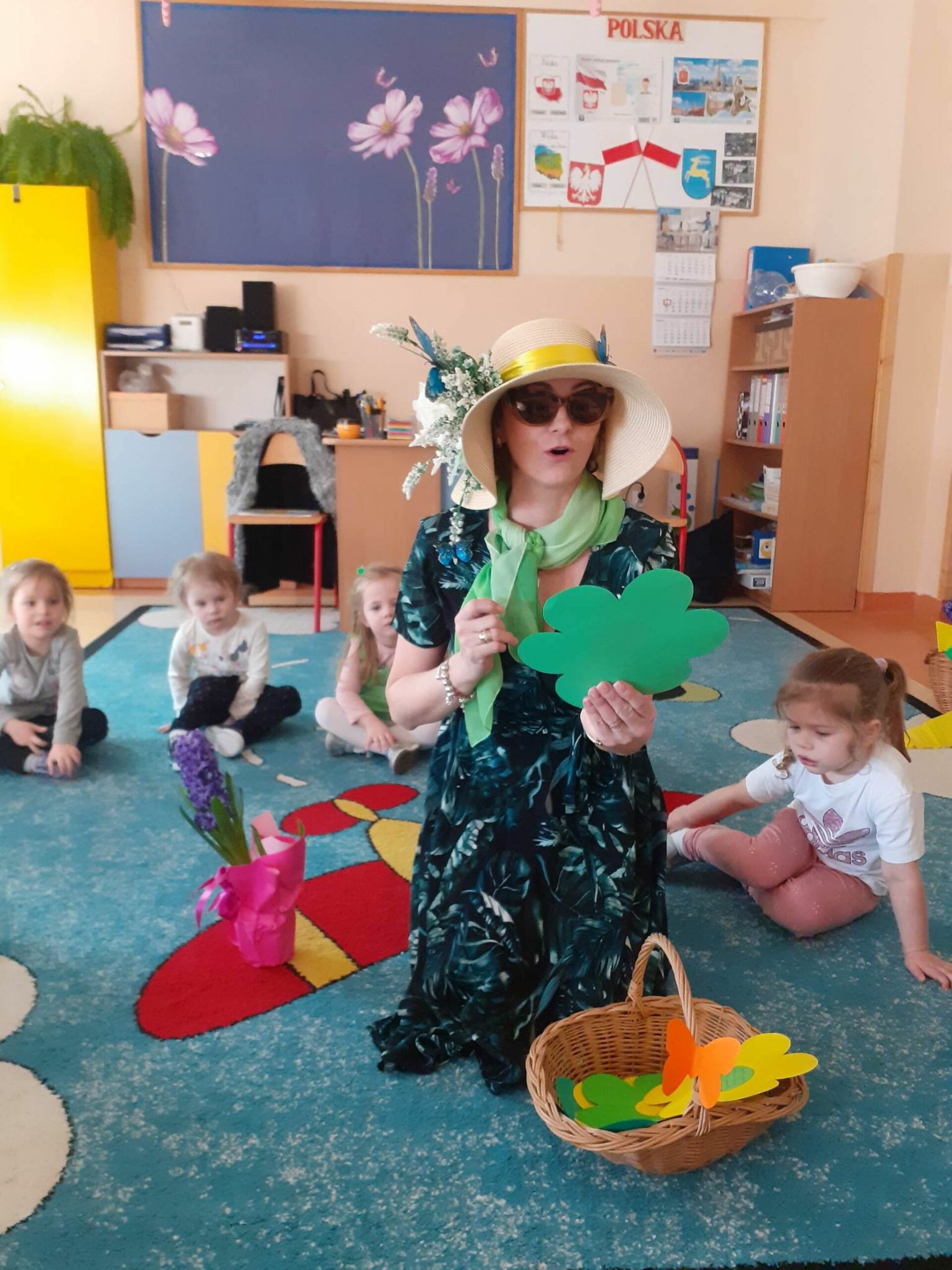 Pani Wiosna, odwiedzając każdą z grup, wręczała przepiękny kwiat, a dzieci chętnie rozwiązywały zagadki przez nią przygotowane. W tym dniu wszyscy bawili się doskonale. Dzieci recytowały piękne wiersze oraz śpiewały piosenki dla szacownego gościa.