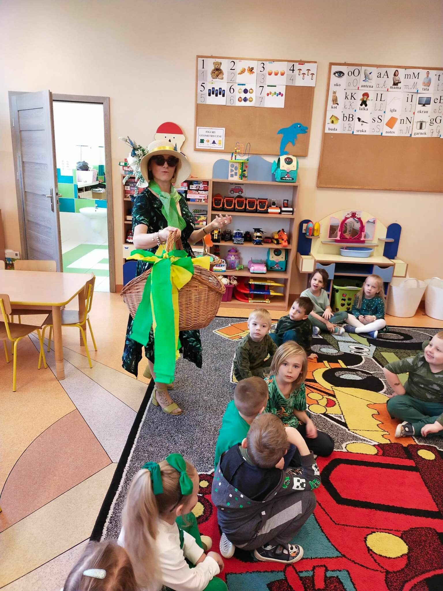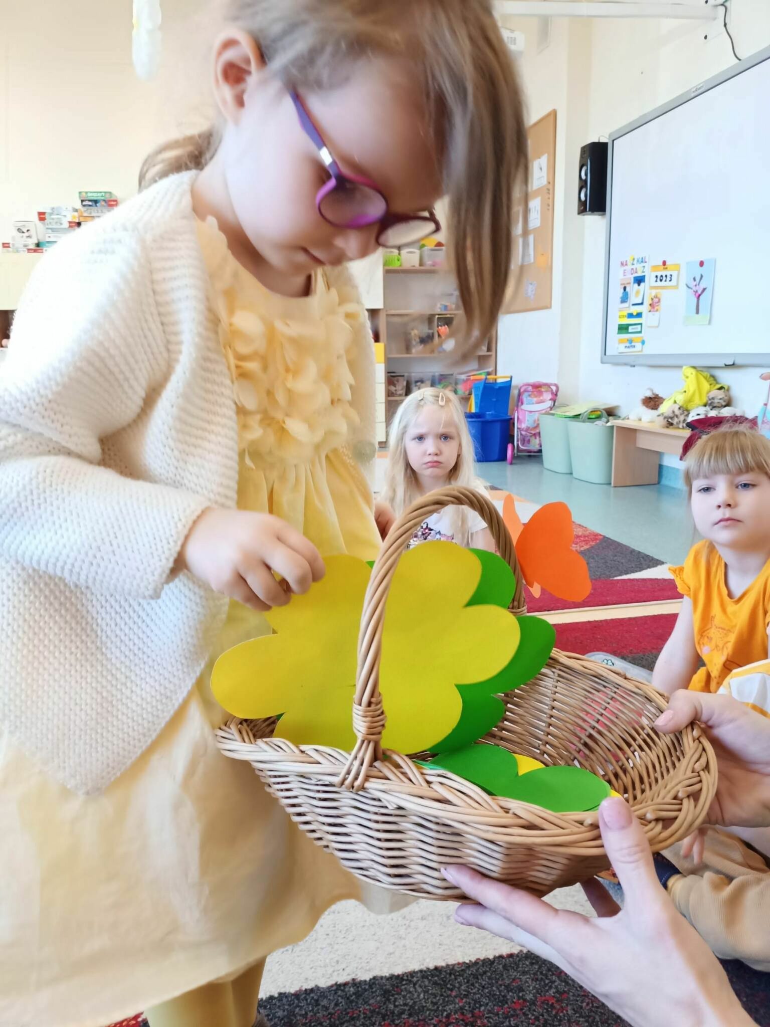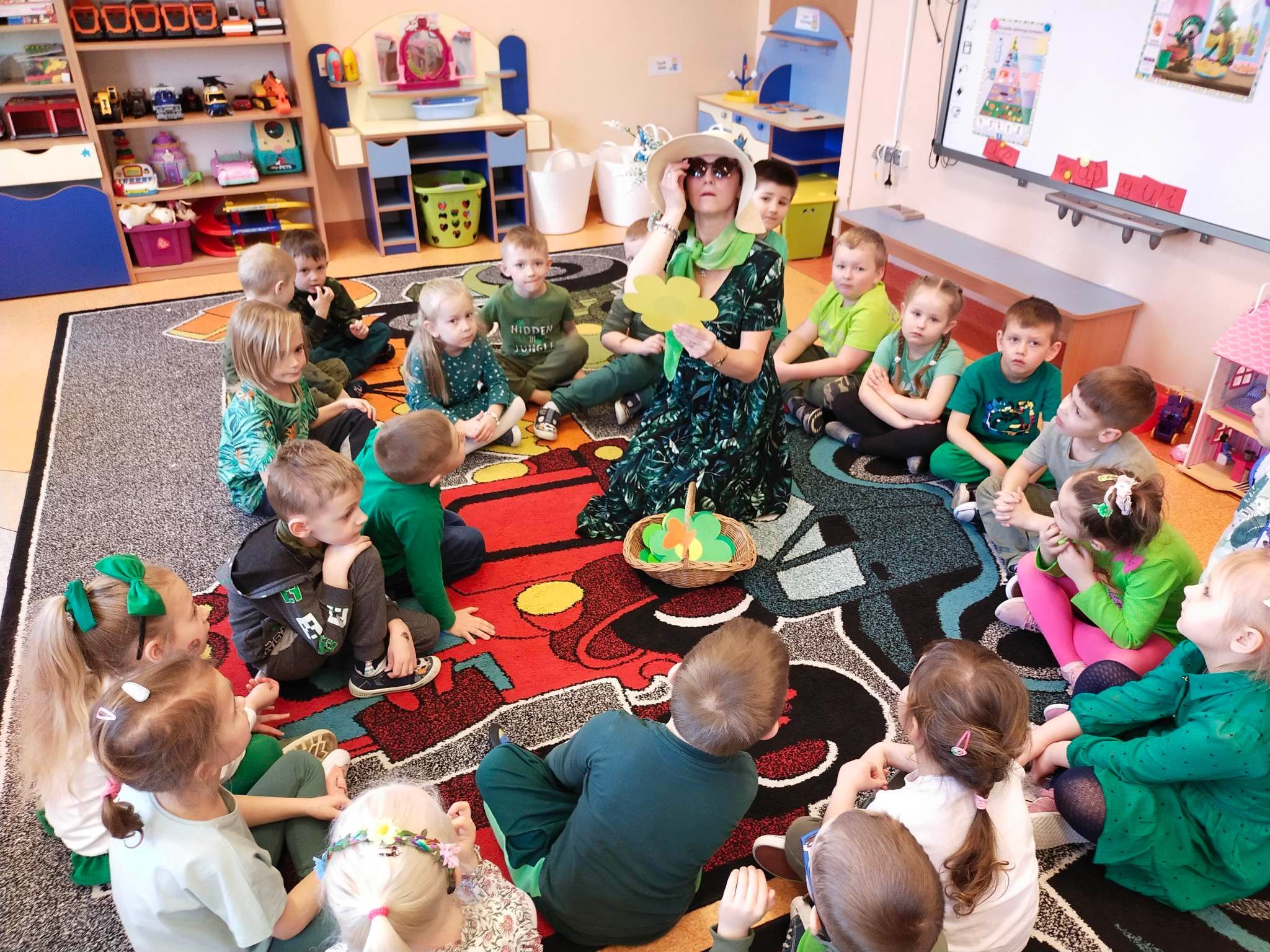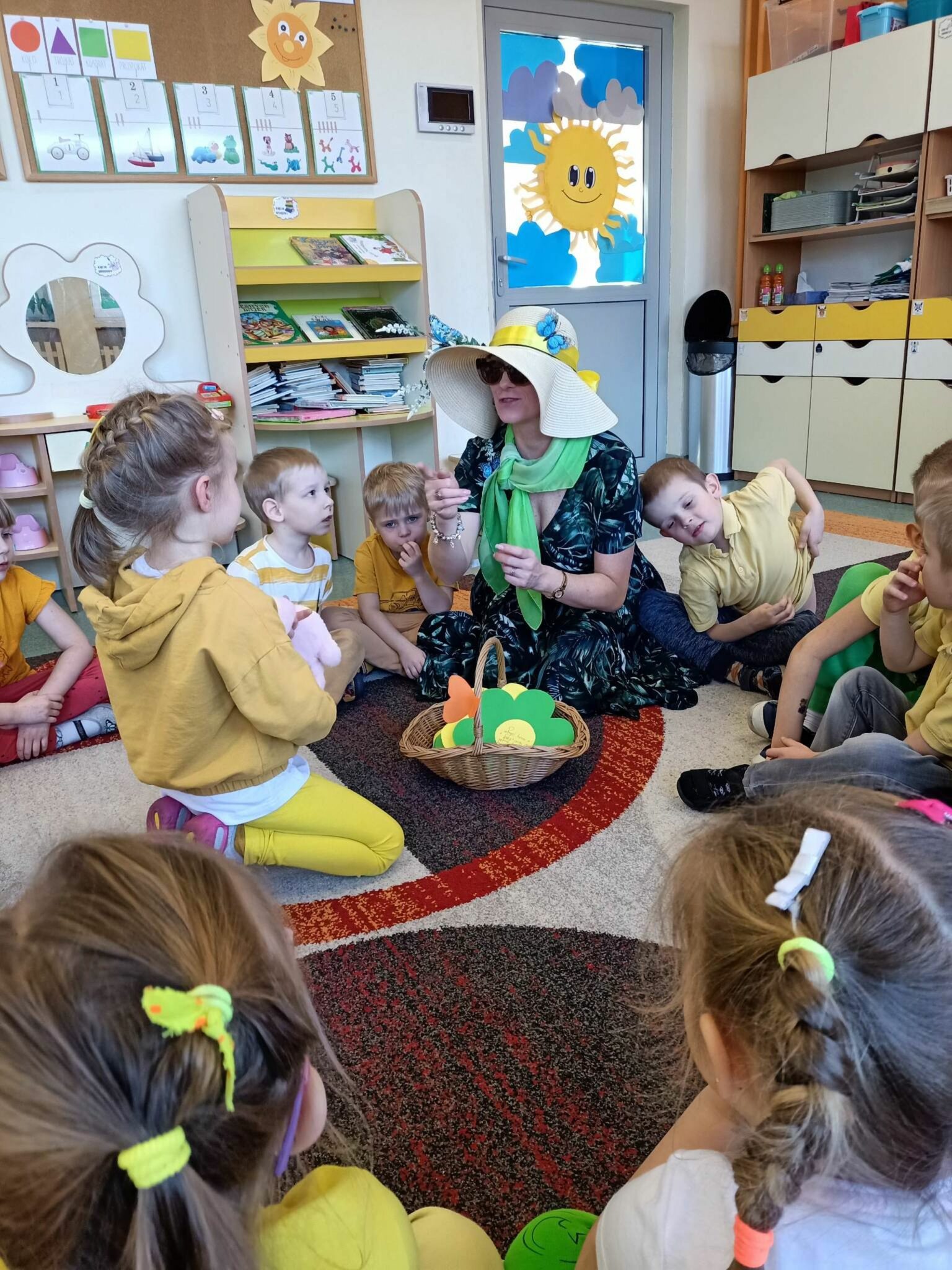 Pani Wiosna, odwiedzając każdą z grup, wręczała przepiękny kwiat, a dzieci chętnie rozwiązywały zagadki przez nią przygotowane. W tym dniu wszyscy bawili się doskonale. Dzieci recytowały piękne wiersze oraz śpiewały piosenki dla szacownego gościa.