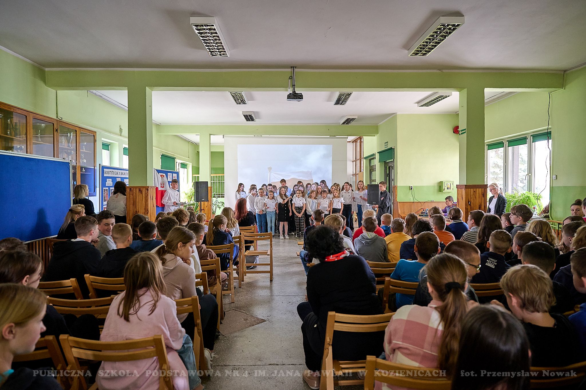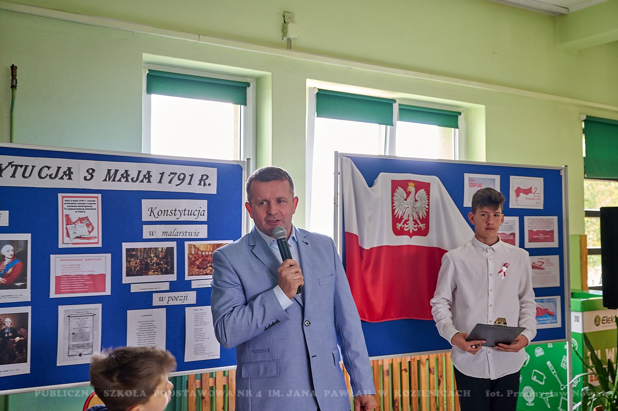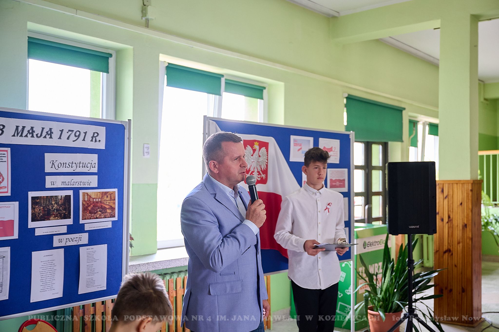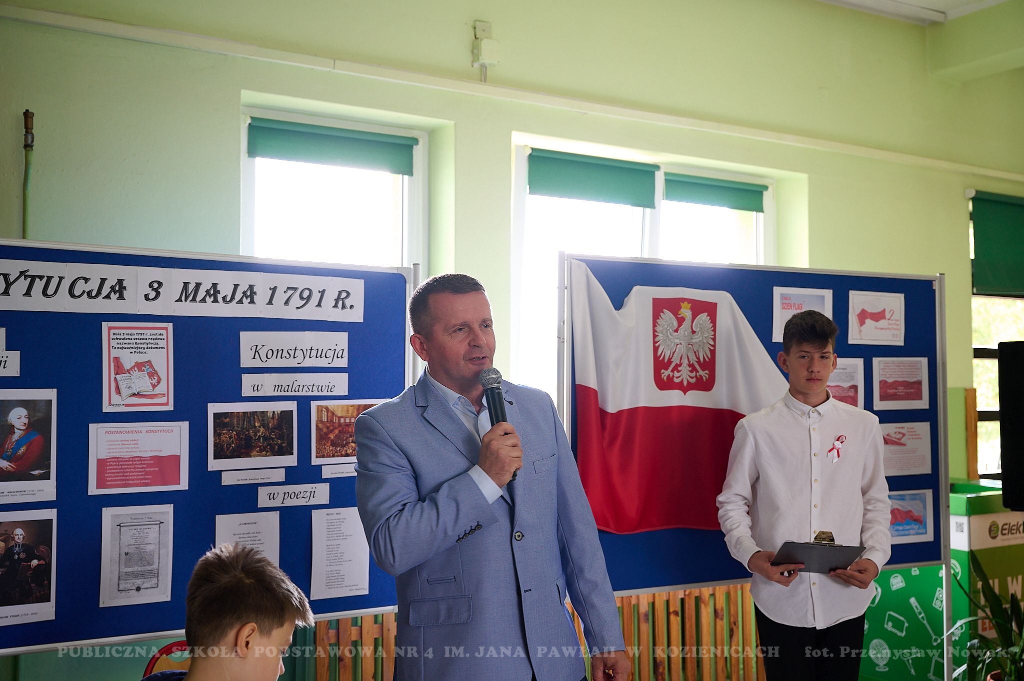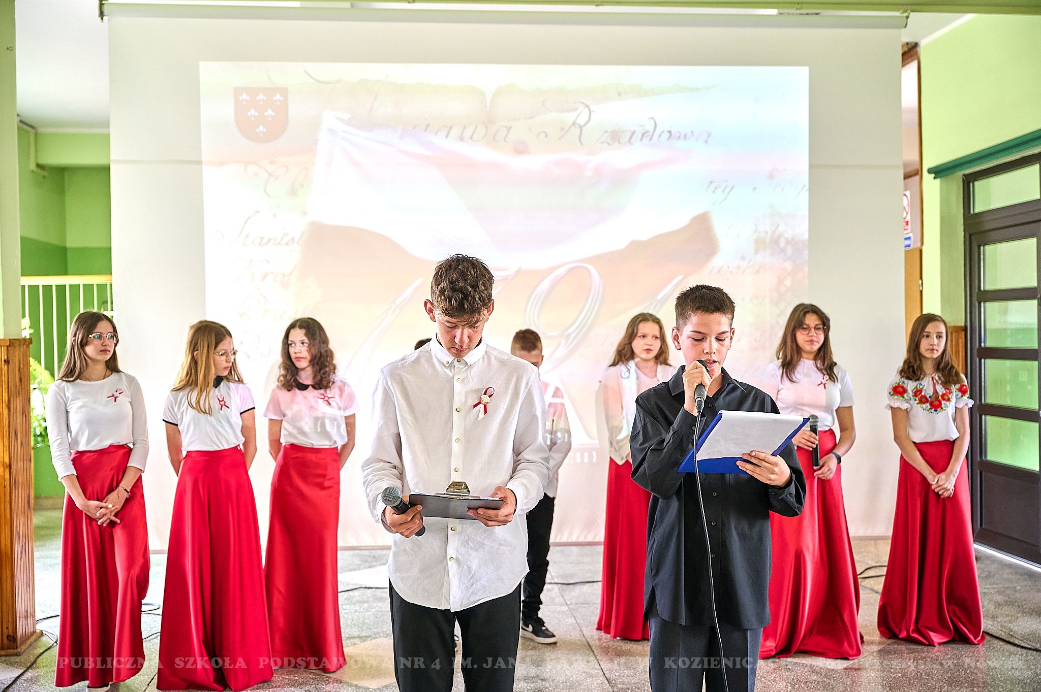 Majowe święta kojarzą się z radością i nadzieją. Uczą patriotyzmu oraz właściwej postawy obywatelskiej. W dniu 28 kwietnia 2023 r. w naszej szkole odbyła się uroczysta akademia z okazji 232 rocznicy uchwalenia Konstytucji 3 Maja. Uczniowie klasy: 6a, 5b, 5c i chór zaprezentowali montaż słowno-muzyczny pt. „Witaj, majowa jutrzenko…”. Patriotyczne pieśni i wiersze pozwoliły przenieść się w przeszłość i dostarczyły wielu wzruszeń uczestnikom uroczystości. Młodzi aktorzy przypomnieli najważniejsze wydarzenia dotyczące okoliczności uchwalenia tej niezwykle ważnej w naszej historii ustawy.