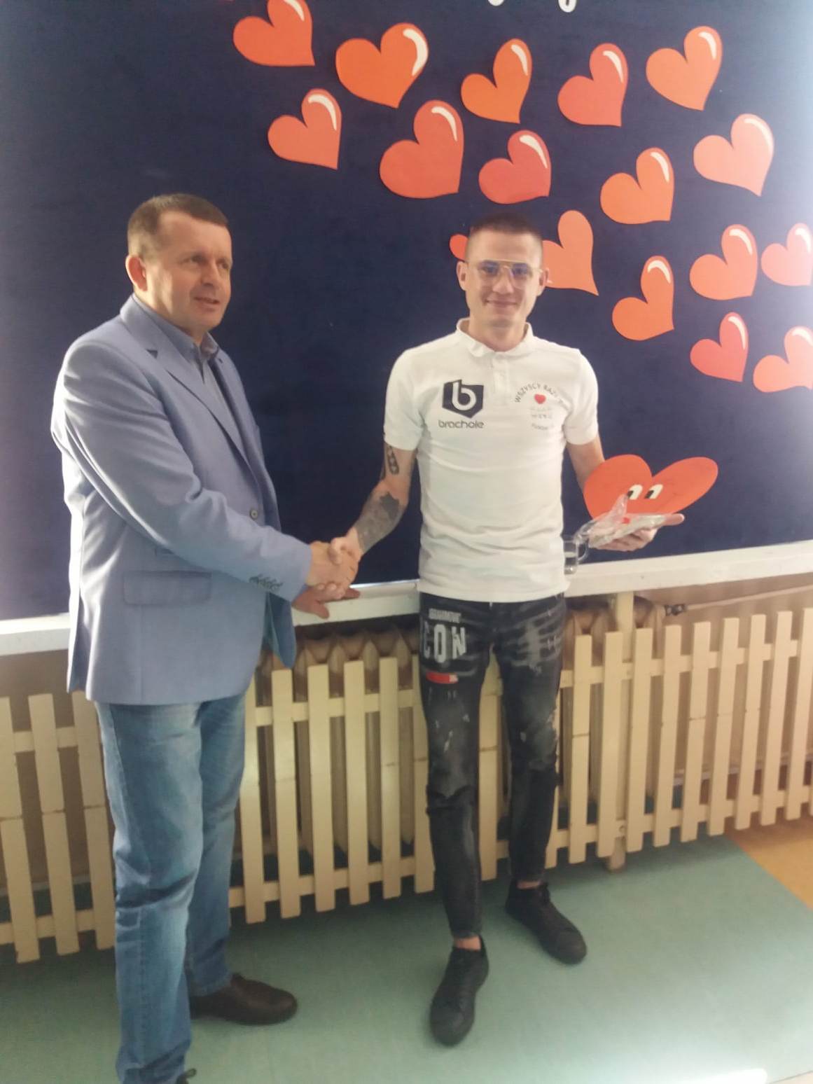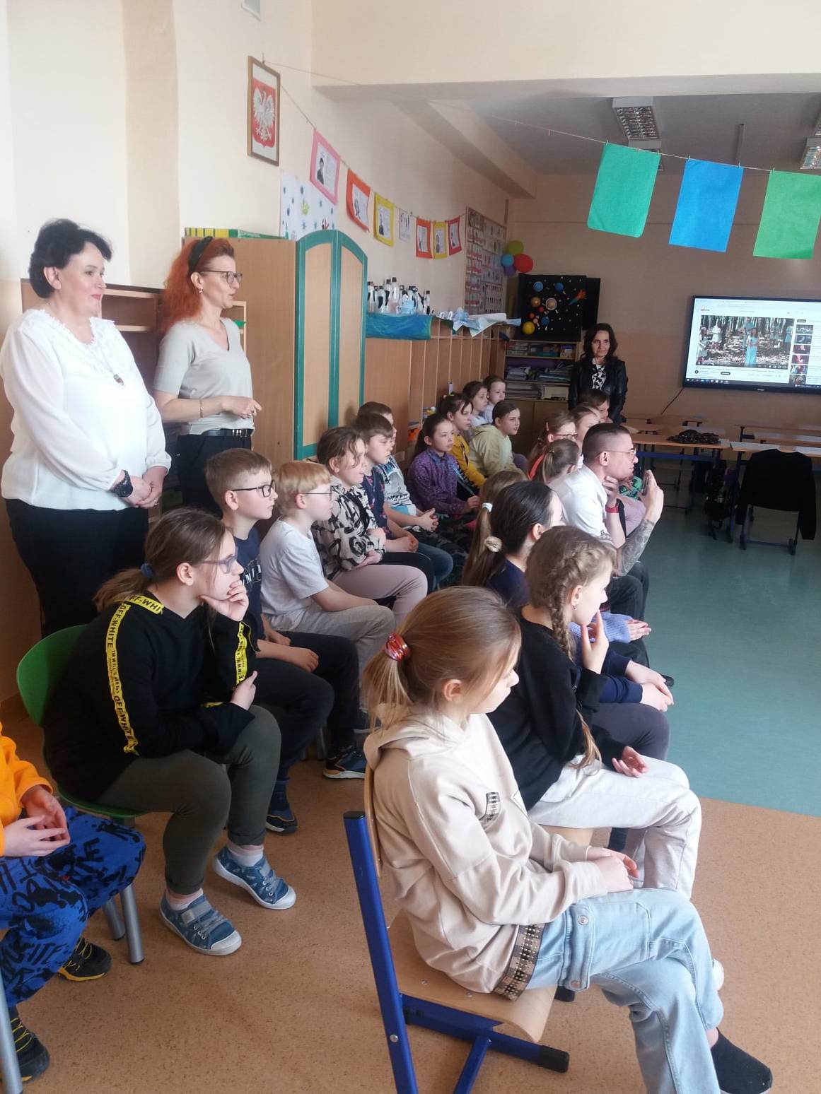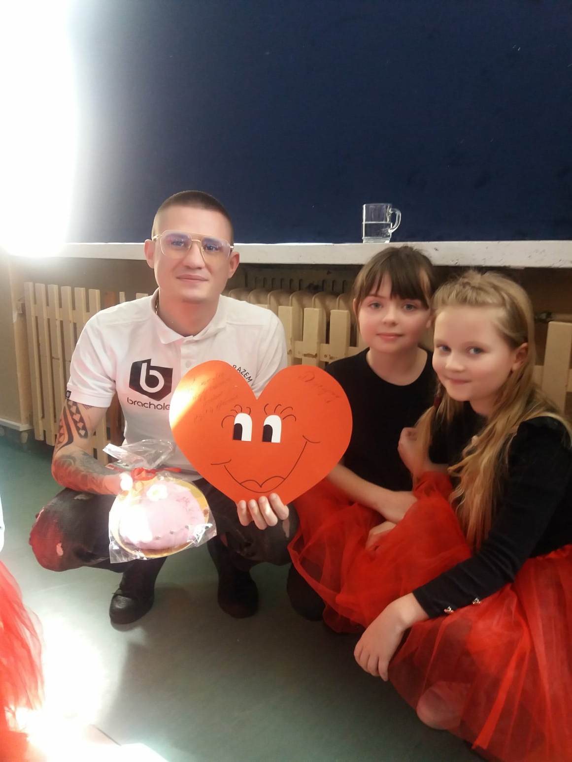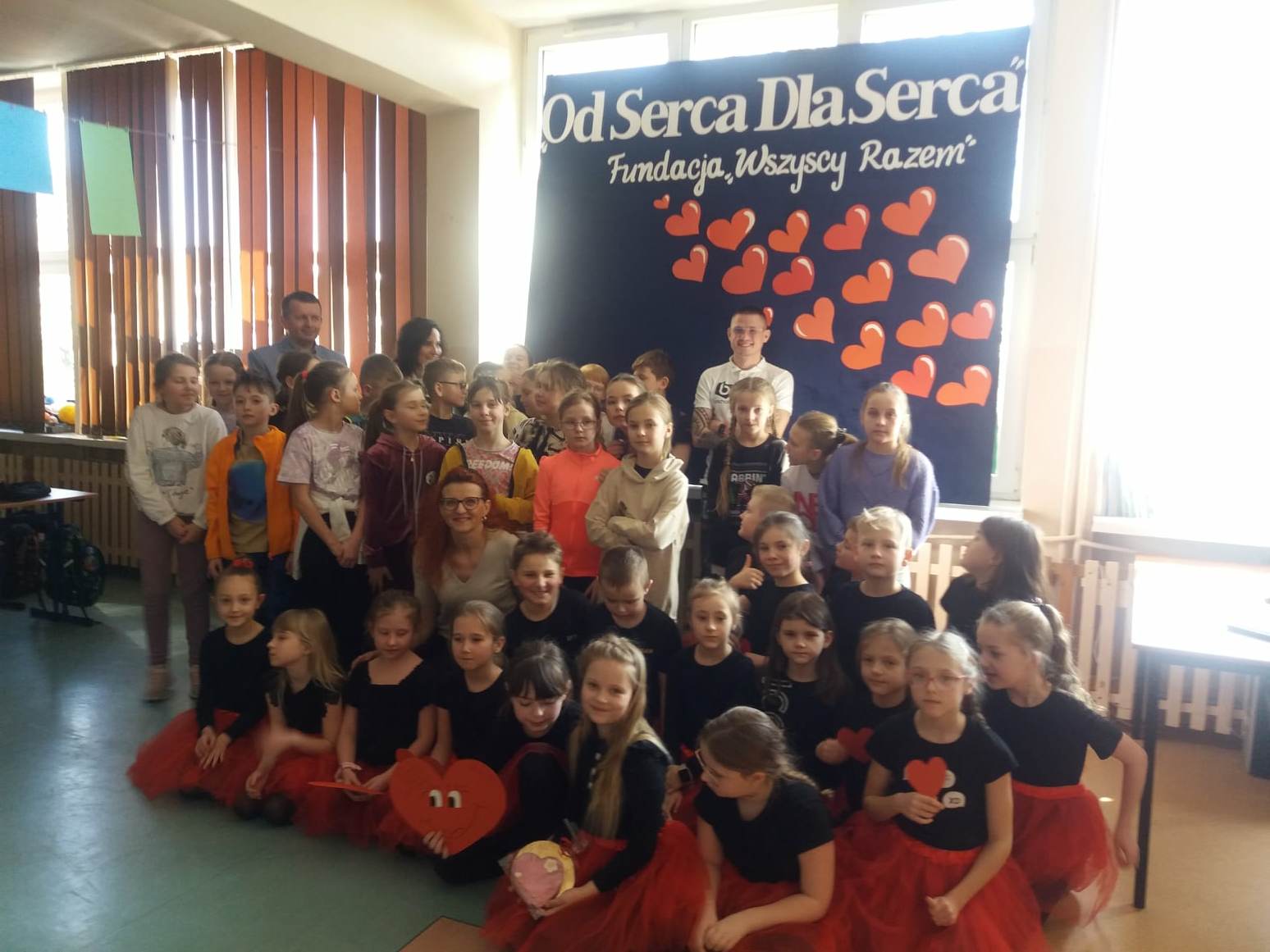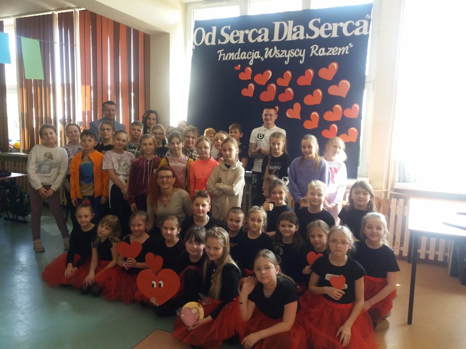 17 marca 2023 odwiedził naszą szkołę prezes fundacji „Wszyscy Razem”, Pan Angelo Radzikowski. Spotkanie rozpoczęło się programem artystycznym przygotowanym przez klasę IIb. Następnie zabrał głos Prezes fundacji, który podziękował całej społeczności szkolnej za ogromny wkład w akcję „Od Serca Dla Serca” na rzecz chorych kardiologicznie dzieci. Pan Angelo Radzikowski opowiedział uczestnikom spotkania o fundacji. Wielokrotnie podkreślał, że ważna jest każda pomoc. Można czynić dobro nie tylko finansowo, ale również czynem i dobrym słowem. Wszystkie dzieci mogą to robić każdego dnia, jeśli tylko są dobrymi przyjaciółmi dla swoich kolegów i koleżanek. Nasz gość opowiedział również o swojej chorobie i o swoim życiu. Pod koniec spotkania dzieci zadawały pytania dotyczące różnych chorób oraz same dzieliły się swoimi przeżyciami związanymi z pobytem w szpitalu czy podczas jazdy karetką. Na zakończenie zabrał głos Pan Dyrektor Andrzej Suwała, który podziękował Panu Prezesowi fundacji „Wszyscy Razem” za to, że odwiedził naszą szkołę i tak pięknie przedstawił dzieciom sens „POMAGANIA” oraz wartości moralne, jakie niesie za sobą „ BEZINTERESOWNA POMOC DRUGIEMU CZŁOWIEKOWI”. Potem wszyscy uczestnicy spotkania zrobili sobie pamiątkowe zdjęcia.
