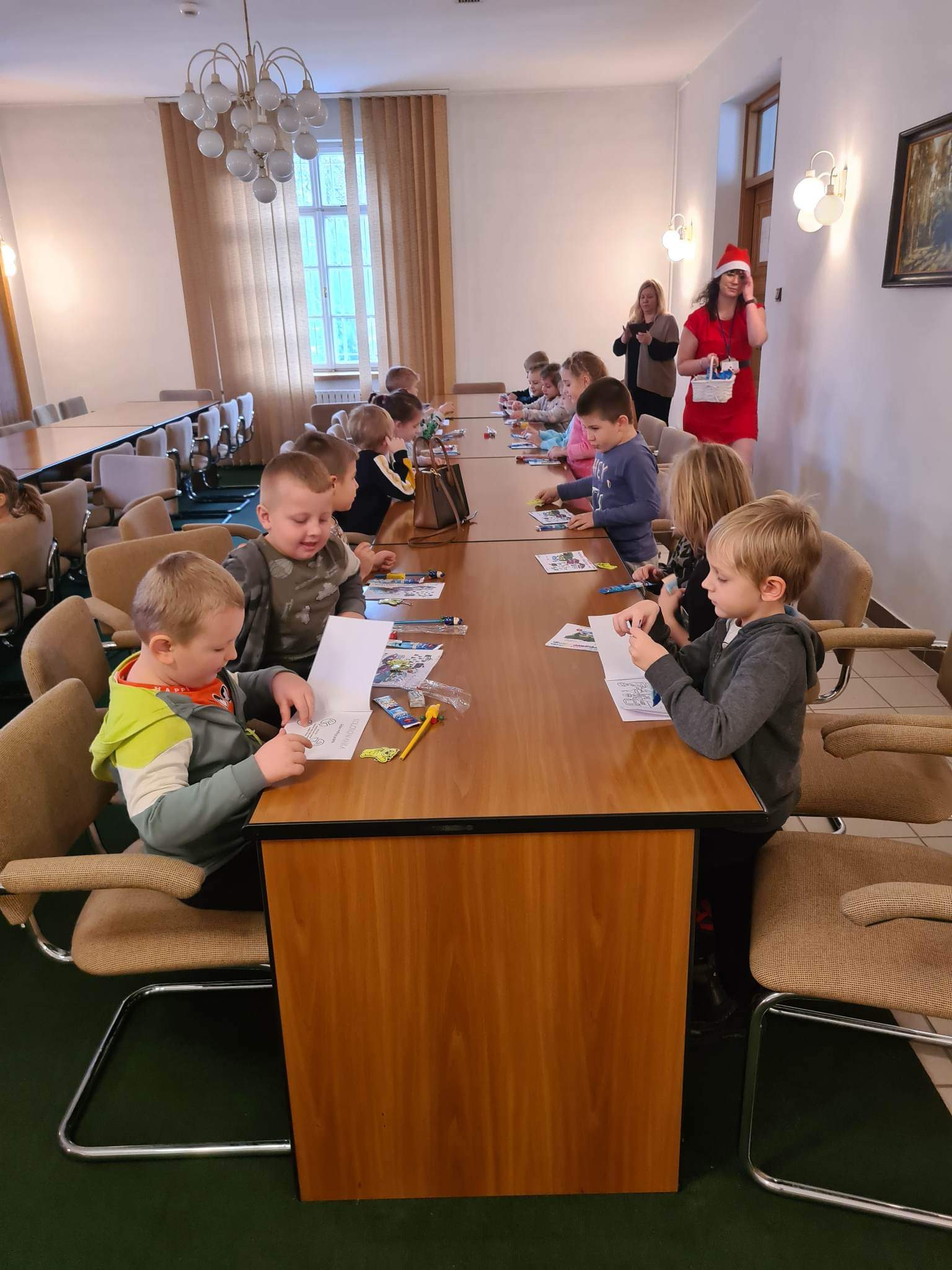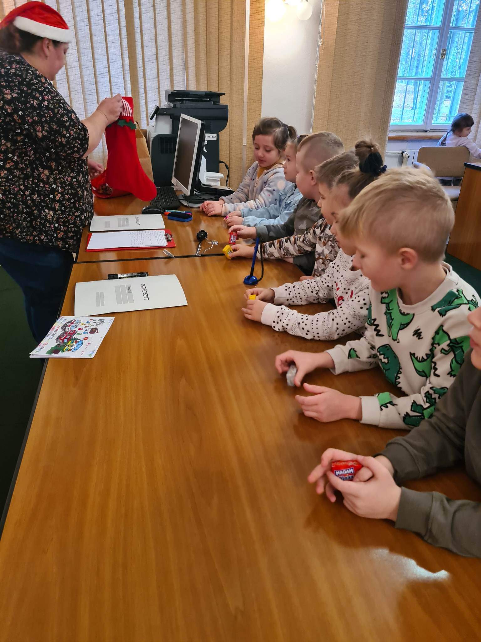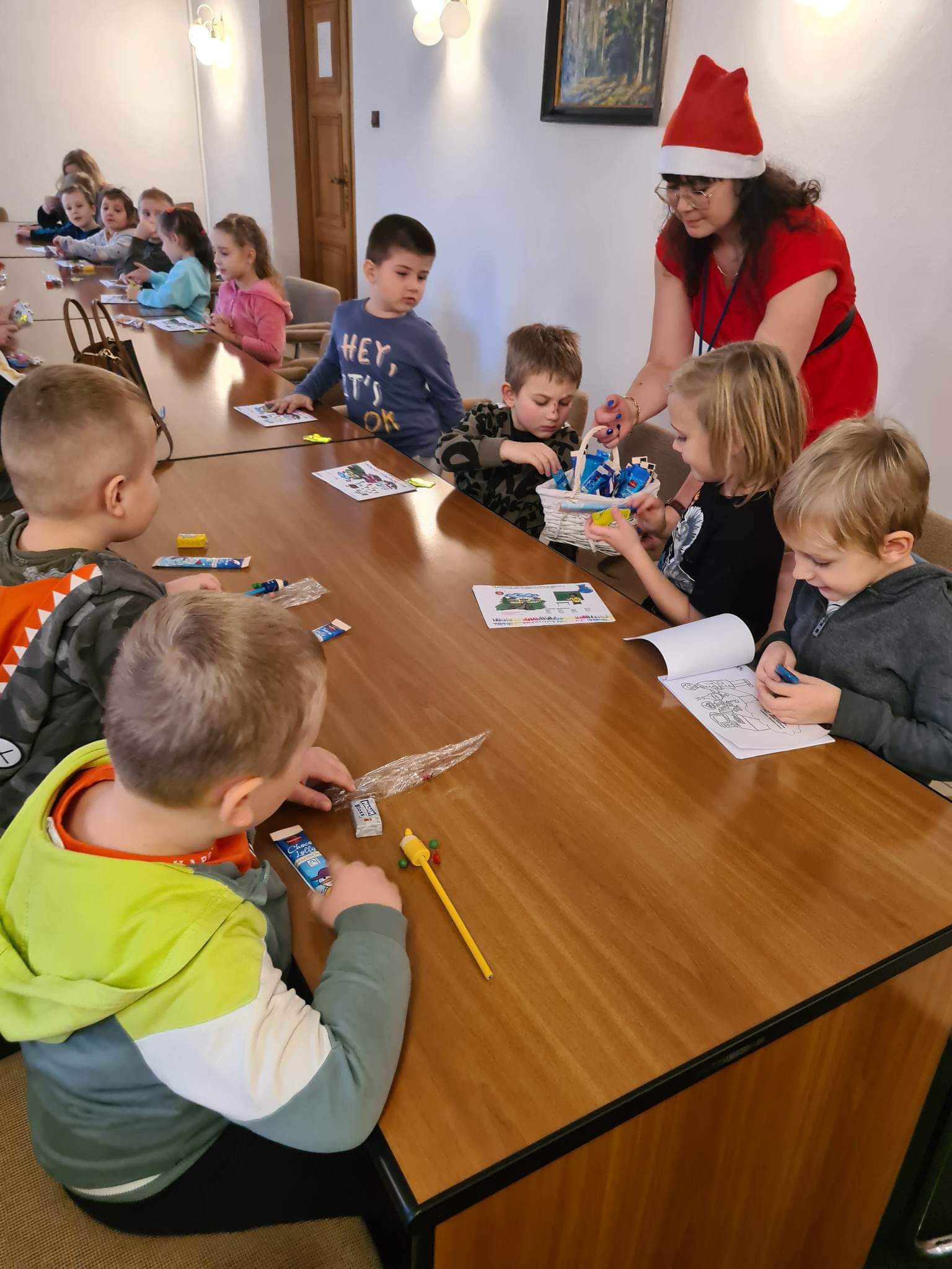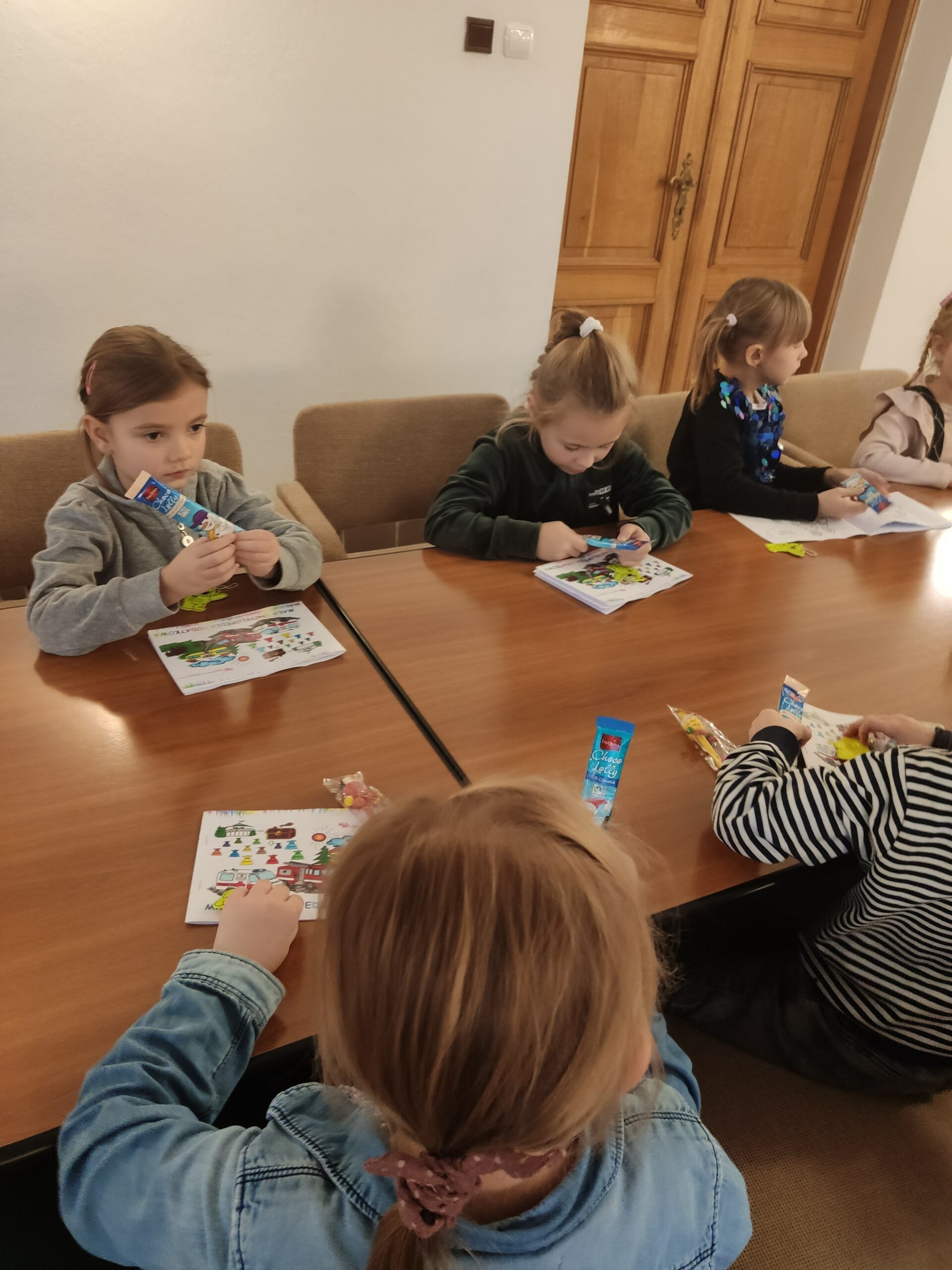 Dnia 9 grudnia dzieci z grupy Delfinki i Żabki wraz z wychowawczyniami odwiedziły Urząd Skarbowy. Wizyta miała na celu zapoznanie dzieci z organizacją administracji skarbowej. Podczas spotkania Panie prowadzące spotkanie w bardzo ciekawy sposób zapoznały dzieci z historią pieniądza, opowiedziały o urzędzie skarbowym, o sprawach, jakie można tu załatwić. Wspólnie podyskutowaliśmy o podatkach, dlaczego warto je płacić i na co są przeznaczane . Dzieci dowiedziały się , jaki wpływ mają podatki na finanse Państwa. Wszystko zostało opowiedziane sposób atrakcyjny dla przedszkolaków. Dzieci za czynny udział w spotkaniu , rozwiązywanie zagadek otrzymały kolorowanki oraz słodkie upominki.