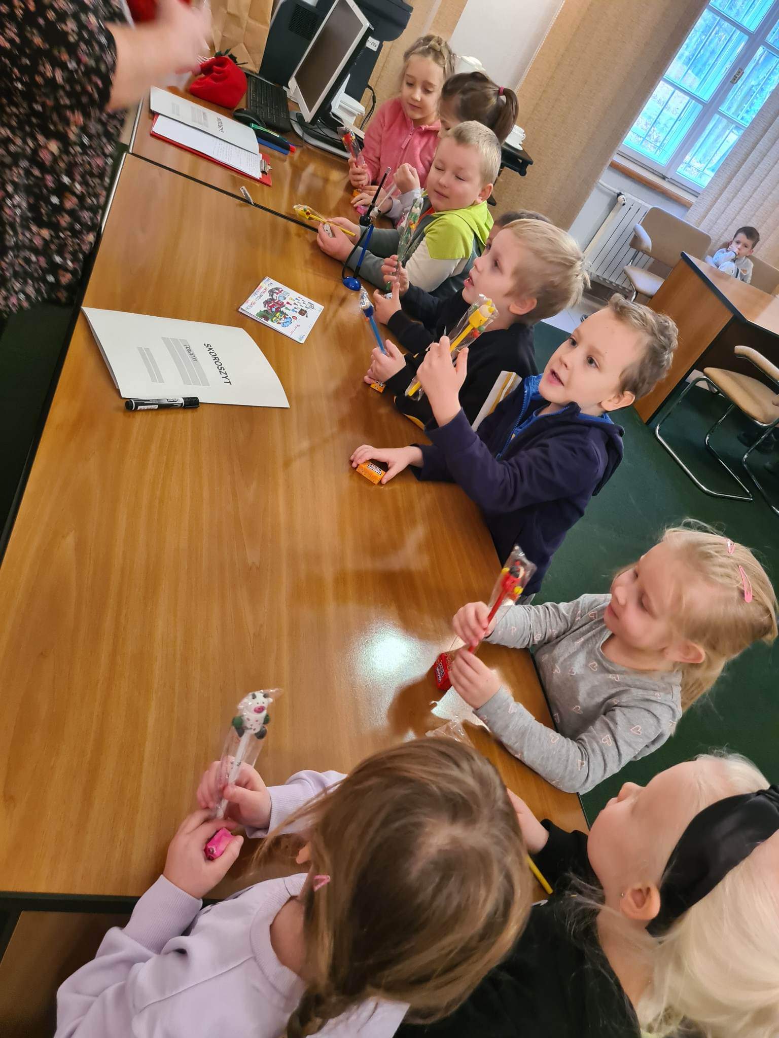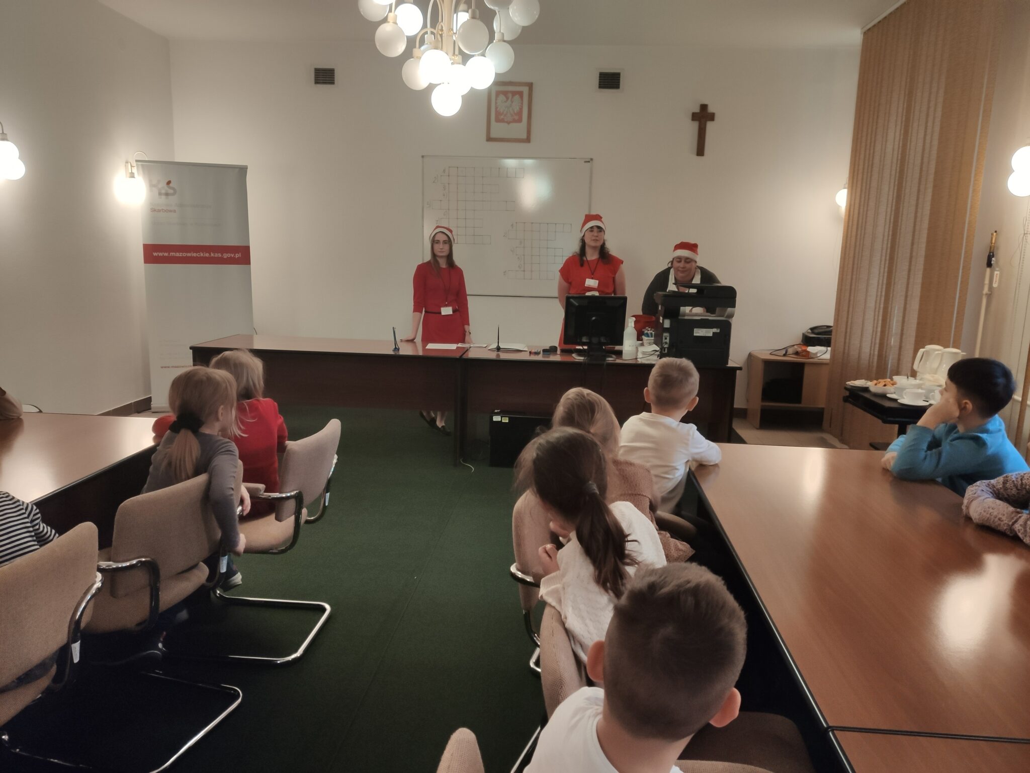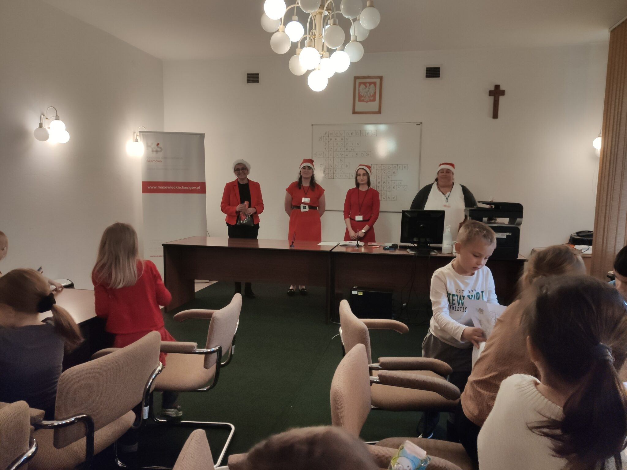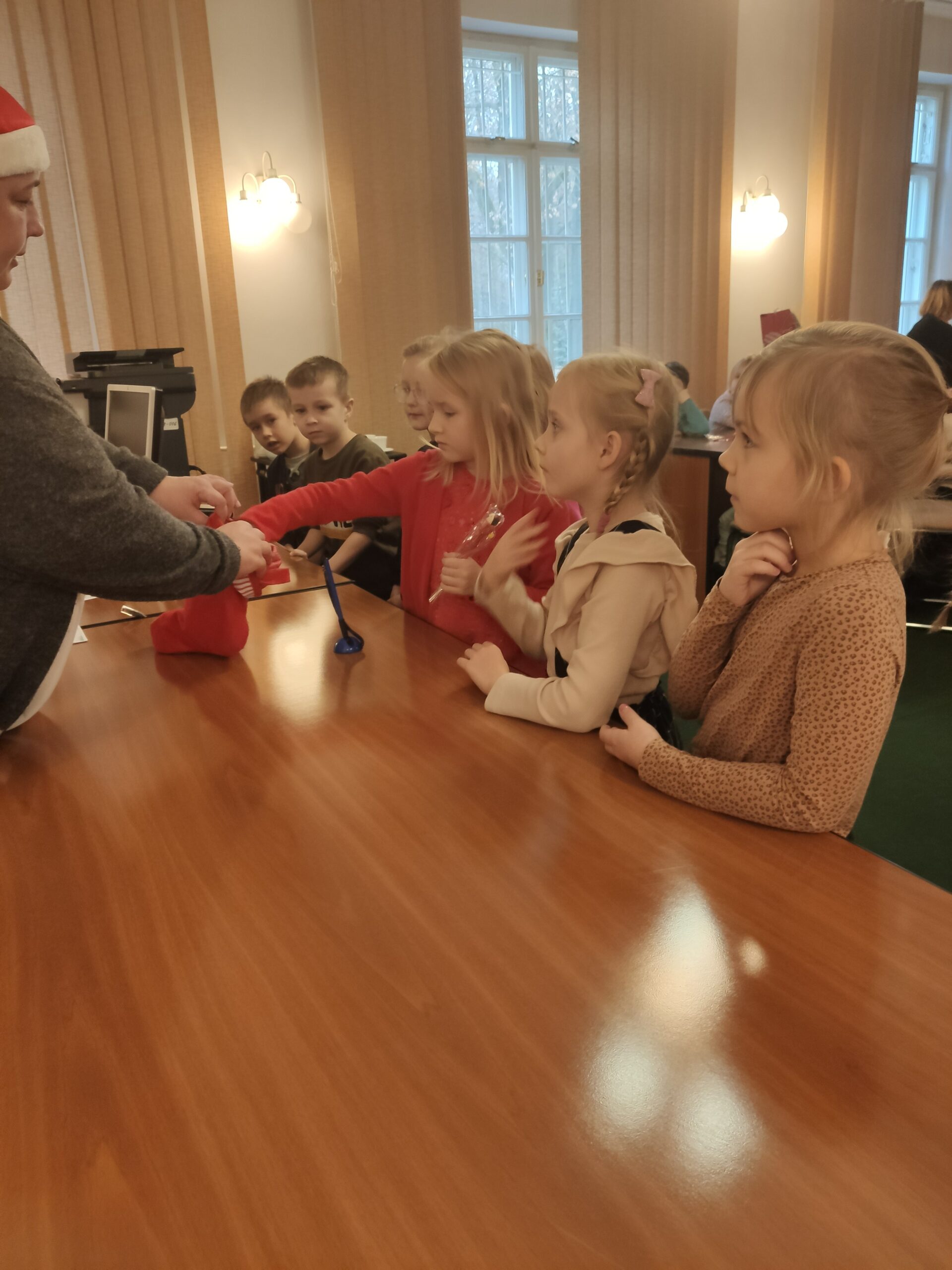 Dnia 9 grudnia dzieci z grupy Delfinki i Żabki wraz z wychowawczyniami odwiedziły Urząd Skarbowy. Wizyta miała na celu zapoznanie dzieci z organizacją administracji skarbowej. Podczas spotkania Panie prowadzące spotkanie w bardzo ciekawy sposób zapoznały dzieci z historią pieniądza, opowiedziały o urzędzie skarbowym, o sprawach, jakie można tu załatwić. Wspólnie podyskutowaliśmy o podatkach, dlaczego warto je płacić i na co są przeznaczane . Dzieci dowiedziały się , jaki wpływ mają podatki na finanse Państwa. Wszystko zostało opowiedziane sposób atrakcyjny dla przedszkolaków. Dzieci za czynny udział w spotkaniu , rozwiązywanie zagadek otrzymały kolorowanki oraz słodkie upominki.