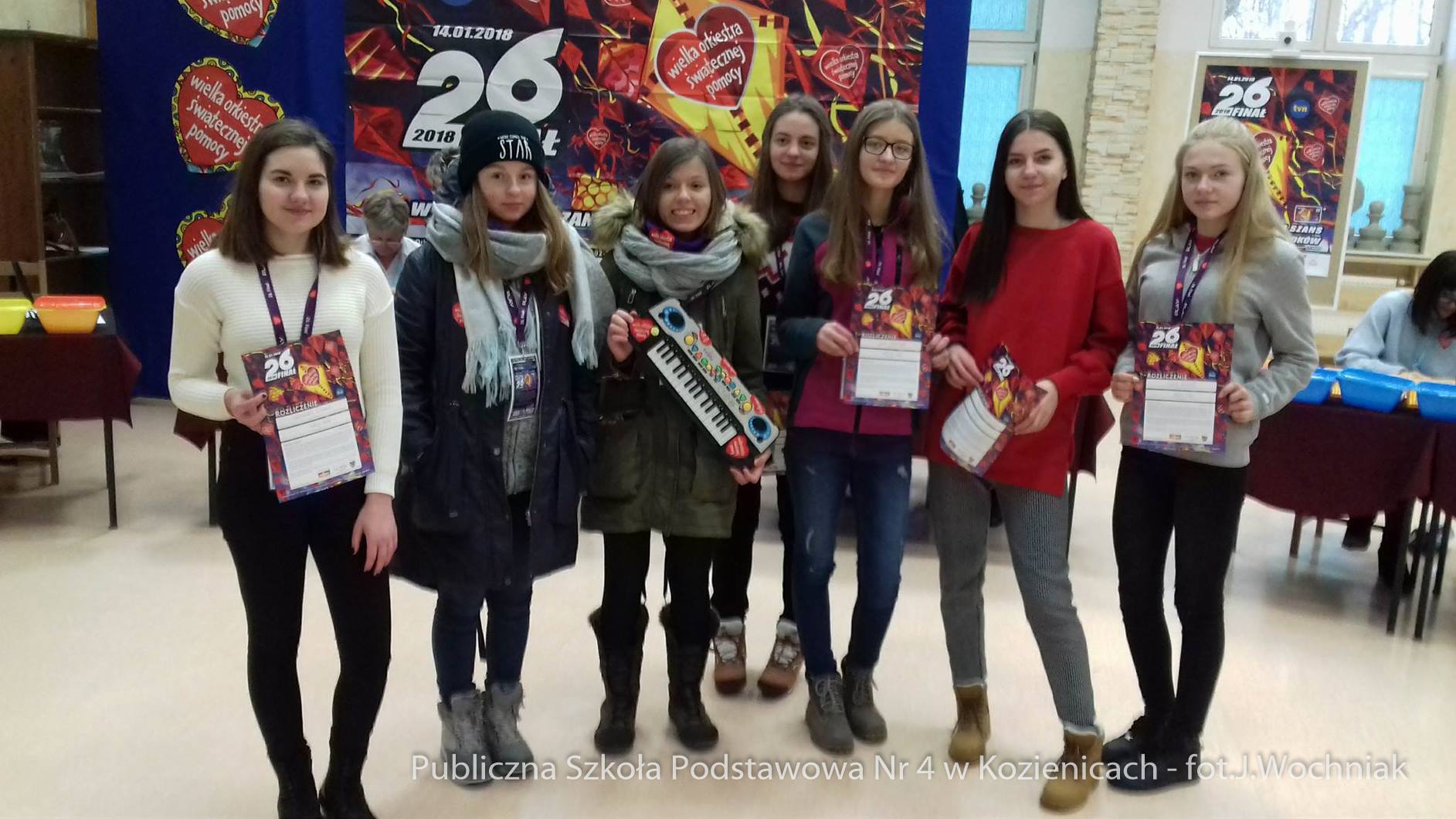 14 stycznia odbył się 26. Finał Wielkiej Orkiestry Świątecznej Pomocy, którego celem było pozyskanie wsparcia dla podstawowych oddziałów neonatologicznych. Tysiące wolontariuszy wyszło tego dnia na ulice, aby przeprowadzić zbiórkę pieniędzy. Wśród nich były również: Iga Smolarczyk, Julia Strzelczyk, Oliwia Wasińska, Agata Wiraszka, Iga Zawodnik, Ola Lisicka, Zuzanna Polanowska, Adrianna Śmietanka – uczennice naszej szkoły, dzielne wolontariuszki, które nie bały się zimna i pełne energii zbierały pieniądze dla najmłodszych pacjentów. Mieszkańcy Kozienic chętnie włączali się do akcji, wrzucając pokaźne sumy pieniędzy do puszek. Serdecznie dziękujemy wszystkim wolontariuszom za zaangażowanie, wytrwałość i poświęcony czas wolny. Niech nagrodą dla Was będą uśmiechy dzieci, które dzięki WOŚP dostają szansę na szczęśliwe życie.Dziewczyny brawa za wytrwałość ! 🙂