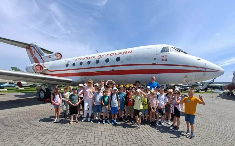 6 czerwca 2023r. w ramach zajęć świetlicowych uczniowie PSP nr 4 w Kozienicach uczestniczyli w wyciecze do Dęblina. Po spotkaniu z Panią Komandor Podporucznik Kamilą Grodek dzieci chętnie odwiedziły Muzeum Sił Powietrznych w Dęblinie. Liczne atrakcje sprawiły, że czas minął dzieciom niepostrzeżenie i miło. Niesamowite wrażenie na uczestnikach wyjazdu zrobił jedyny w Polsce Śmigłowiec Mi-6 , który swoją wielkością zadziwił wszystkich. Po zwiedzaniu wystawy związanej z historią polskiego lotnictwa, dzieci obejrzały wystawę plenerową obejmującą niemal 90 statków powietrznych. Każdy uczestnik wycieczki mógł wejść na pokład samolotu prezydenckiego i obejrzeć jego wnętrze wraz z kabiną pilotów. Po zakupieniu pamiątek związanych z lotnictwem wróciliśmy do Kozienic, gdzie na dzieci czekał słodki upominek, przygotowany przez kierownika wycieczki, Panią Agnieszkę Klimas. Do zobaczenia za rok, być może już z wykorzystaniem symulatorów lotów powietrznych.