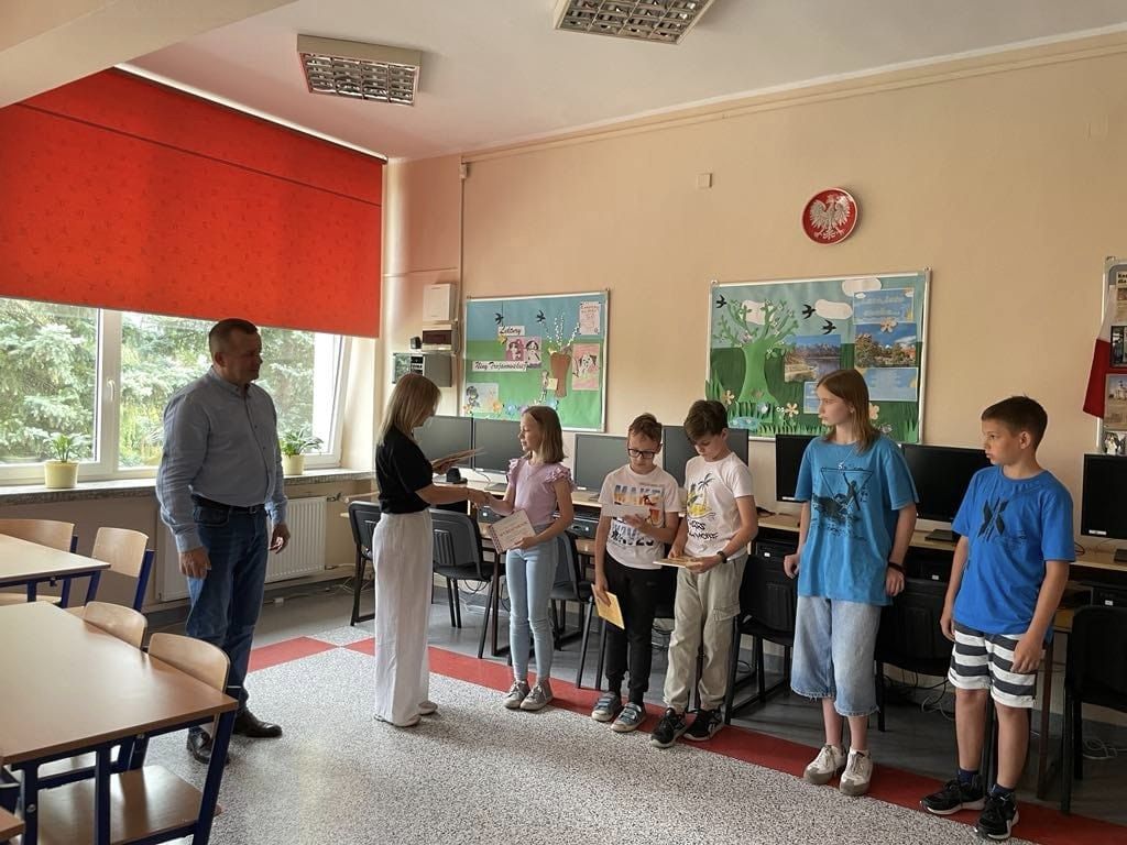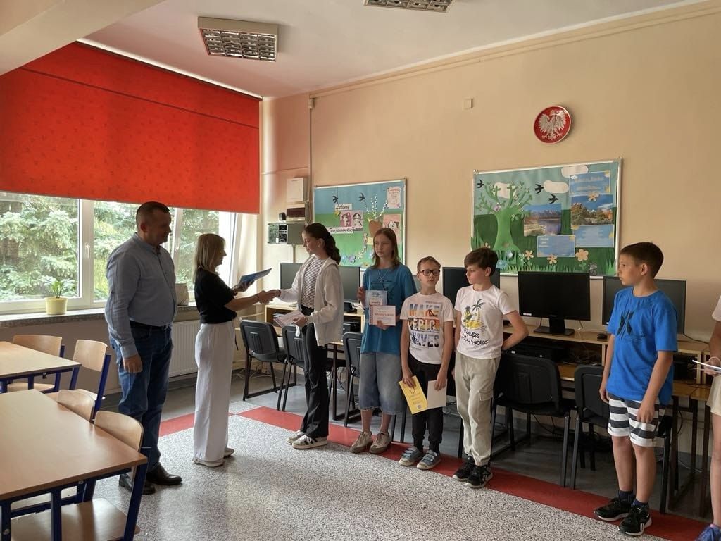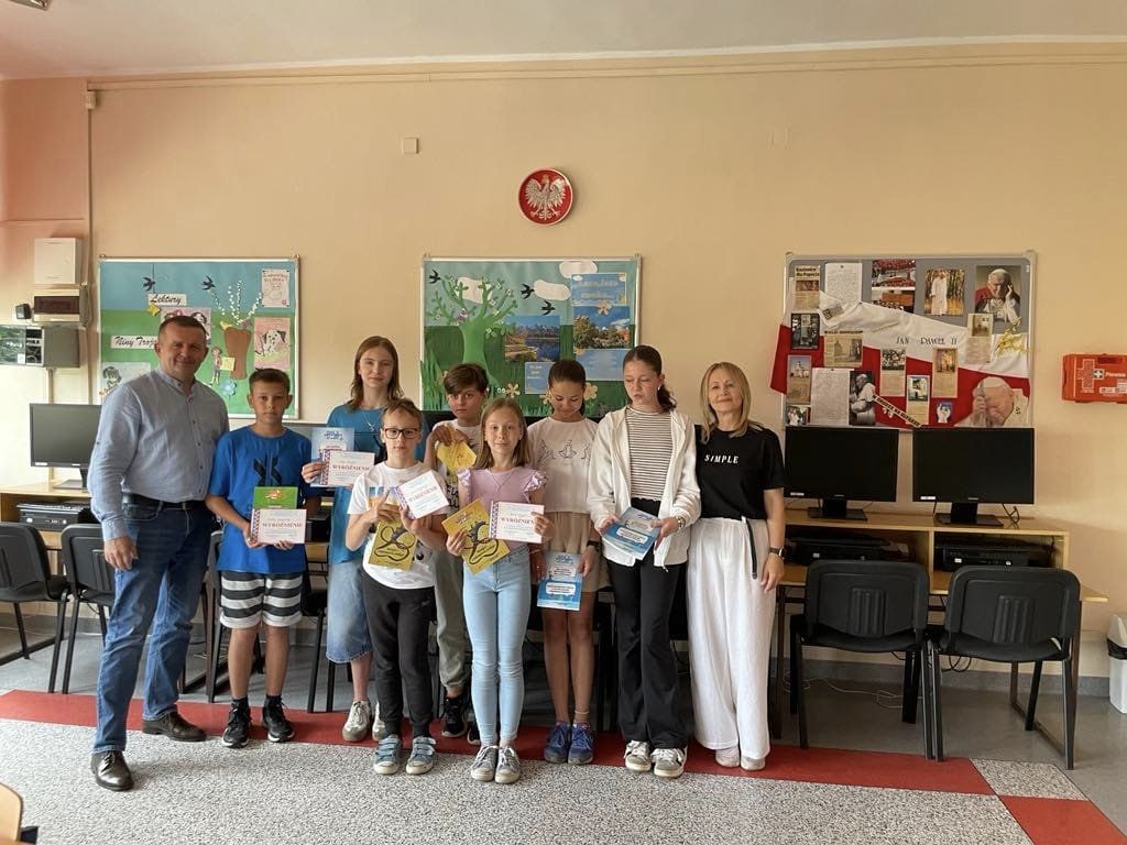 XXXIII edycja Międzynarodowego Konkursu „ Kangur Matematyczny” Dnia 21 marca 2024 r. odbyła się . Naszą szkołę reprezentowało w konkursie 45 uczniów z klas II – VII. Szkolni uczestnicy mierzyli się z zadaniami podzielonymi na cztery kategorie wiekowe. W czasie konkursu uczniowie mogli sprawdzić swoje wiadomości matematyczne oraz umiejętność logicznego myślenia i wyciągania wniosków. Z przyjemnością informujemy, że wyróżnienia w Konkursie „ Kangur Matematyczny” 2024 otrzymali: Borowski Aleksander kl. 2a Jakubowski Michał kl. 2b Kalbarczyk Jakub kl. 3b Angliś Julia kl. 3c Wasiłek Maja kl. 5b Pakuła Liliana kl. 6c Grzesiak Maja kl. 6c Gregorczyk Mikołaj kl. 7a Wyróżnionym uczniom serdecznie gratulujemy. Wszystkim uczestnikom dziękujemy za udział w konkursie i życzymy sukcesów w kolejnych jego edycjach! Szkolny koordynator konkursu – Joanna Skirzyńska.