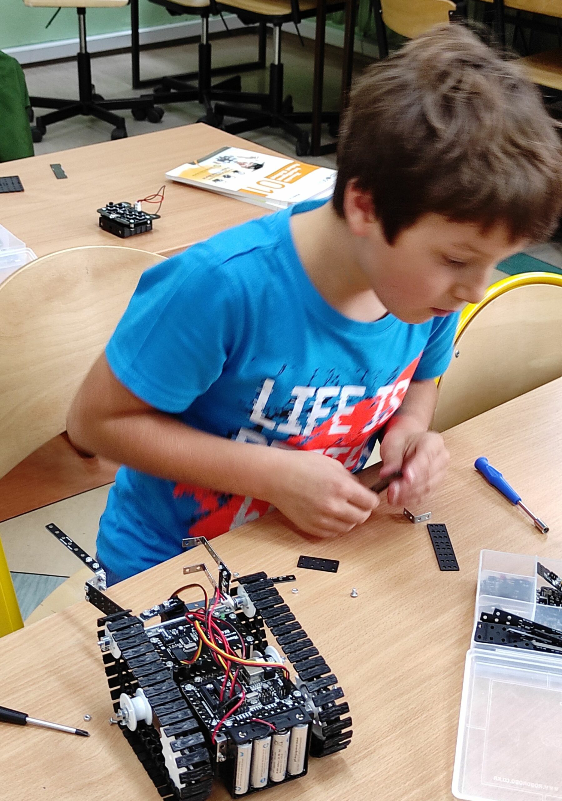 Zajęcia są realizowane w ramach projektu unijnego pt. ” Dobry start w przyszłość”. Robotyka to bardzo aktualna dziedzina naszego życia, która pobudza przede wszystkim w dzieciach wszelkie pokłady pomysłowości i kreatywności.Wiedza w ten sposób zdobyta jest łatwiej przyswajana przez młode i chłonne umysły. Uczestnicy zajęć uczą się nie tylko budowy i programowania robotów, ale przede wszystkim logicznego myślenia. Jest to również dla nich doskonały sposób na dobre wykorzystanie czasu poza lekcjami, wspólne spotkania z rówieśnikami, a przede wszystkim nauka przez zabawę.