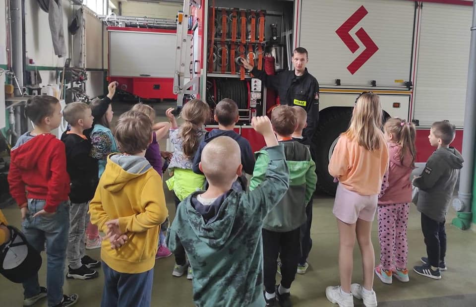 W dniu 1 czerwca uczniowie klasy I a pod opieką wychowawczyni i pani Katarzyny Król podczas wycieczki do Państwowej Straży Pożarnej w Kozienicach zapoznali się z pracą strażaków, ubraniami w których pracują, sprzętem gaśniczym, rodzajami pożarów i sposobami ich gaszenia. Utrwalili również numery alarmowe. Byli obecni podczas wyjazdu strażaków do pożaru, co było dla nich dużym przeżyciem. Nie zabrakło również atrakcji, jaką było polewanie wodą z węża strażackiego.